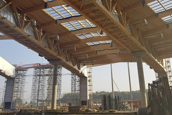 damit verbunden Leitungslängen von drei RWA-Zentralen gesteuert. Sowohl Zentralen als auch Öffnungsgeräte müssen dabei enorm schwierigen klimatischen Bedingungen bestehen. Des Weiteren werden auch die Bereiche Foyer, Umkleiden, Gastro, Technik und die fünf Treppenräume von uns entraucht. Teilweise über NRWG-Lichtkuppeln, teilweise über Fassadenflügel.